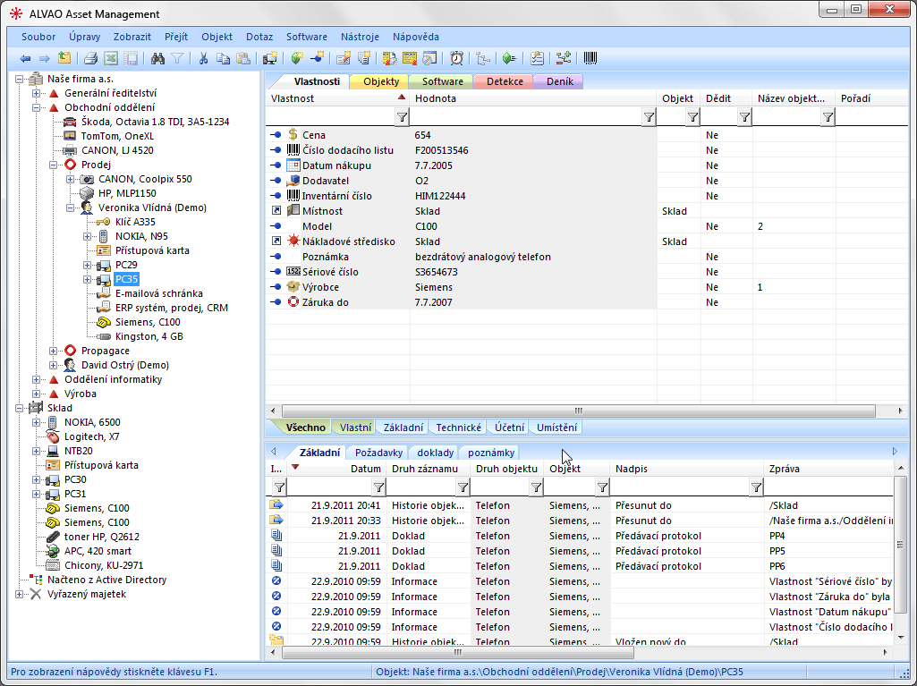 ALVAO Asset Management je informační systém, který vám zajistí dokonalý přehled o hardwarové a softwarové situaci v celé vaší organizaci a všech pobočkách. Jeho uživatelé jsou převážně pracovníci oddělení správy výpočetní a komunikační techniky (ICT) v organizacích. Základem systému je evidence počítačů, předmětů, zařízení a software. Tato evidence nezastupuje běžnou účetní evidenci majetku, ale rozšiřuje ji o specifické informace a funkce, které potřebují pracovníci ICT ke své práci.